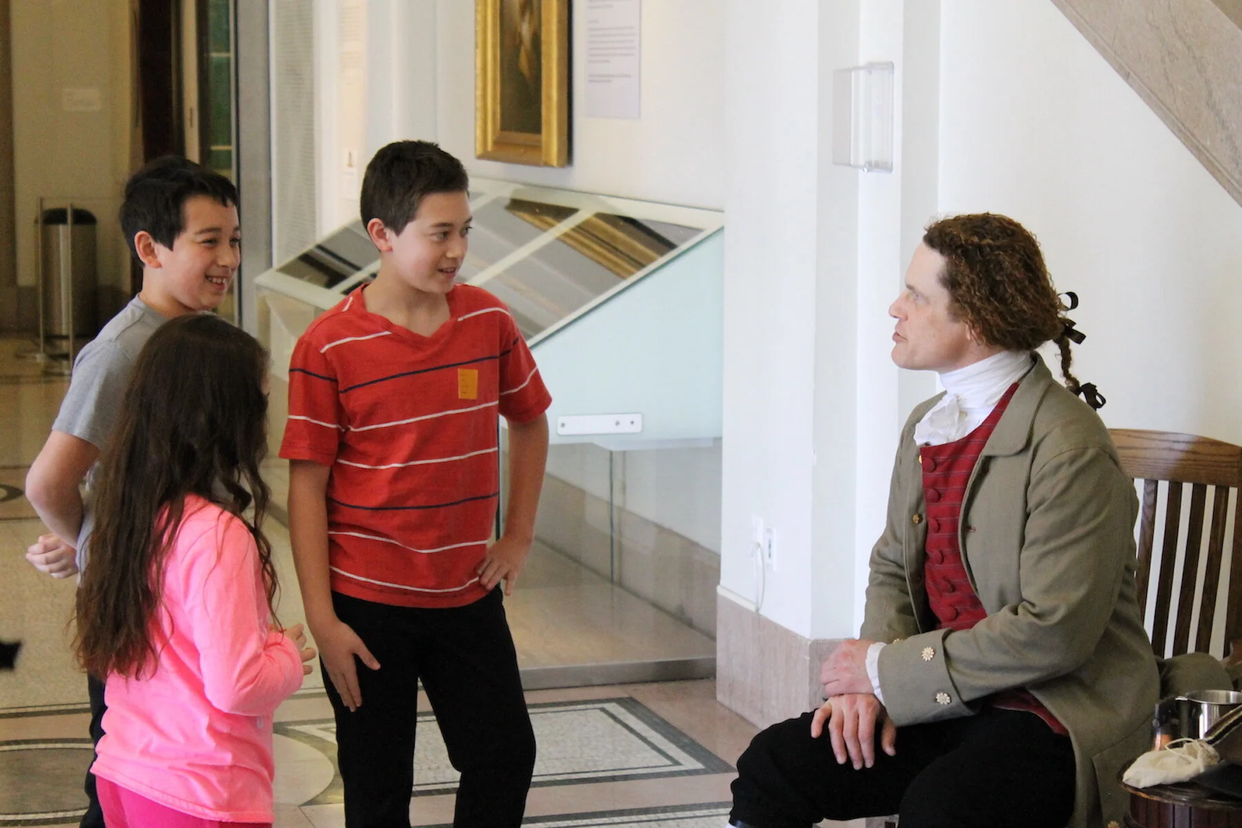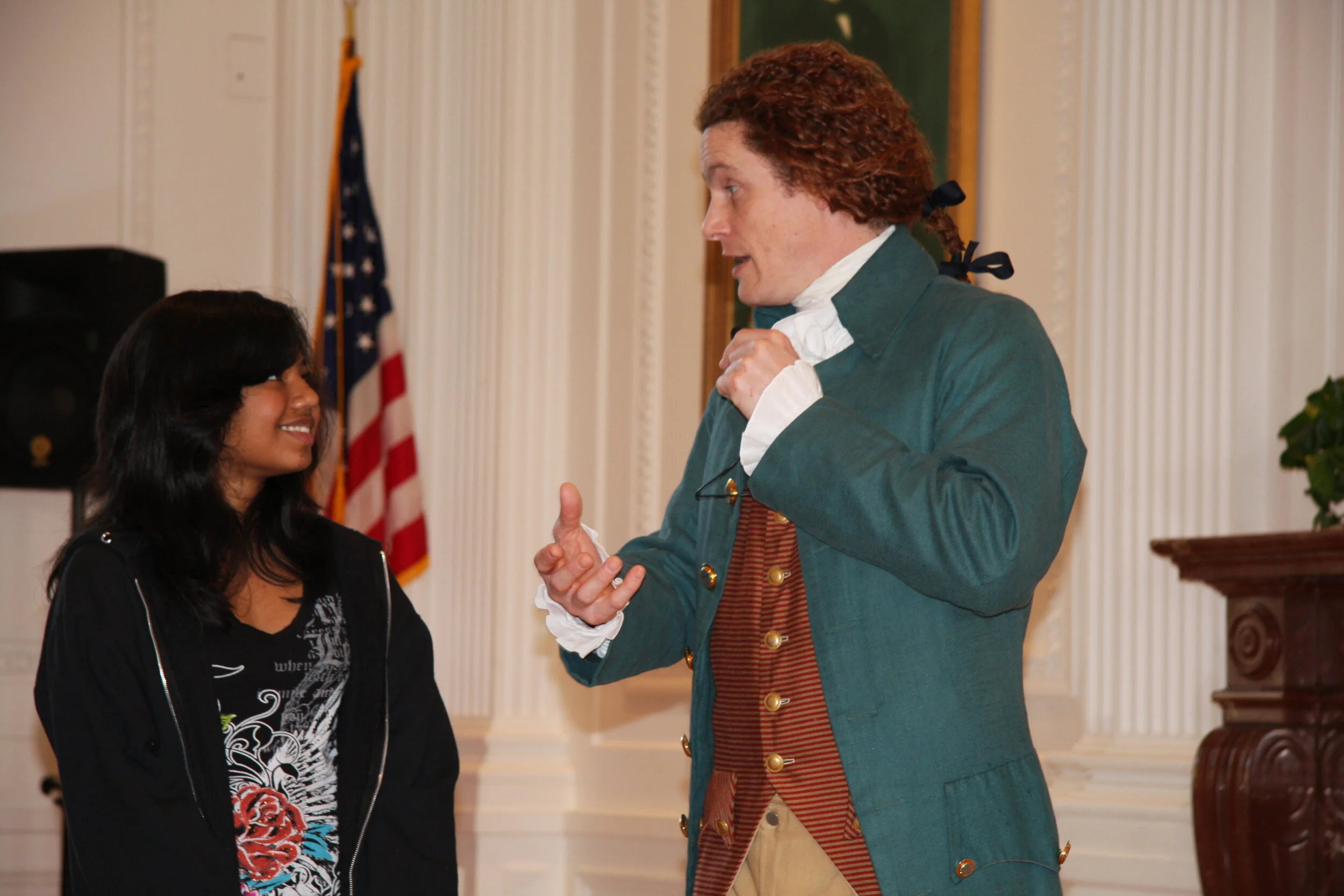 Thomas Jefferson audience participation routine using 18th century toys to illustrate philosophical ideas in the Declaration of Independence